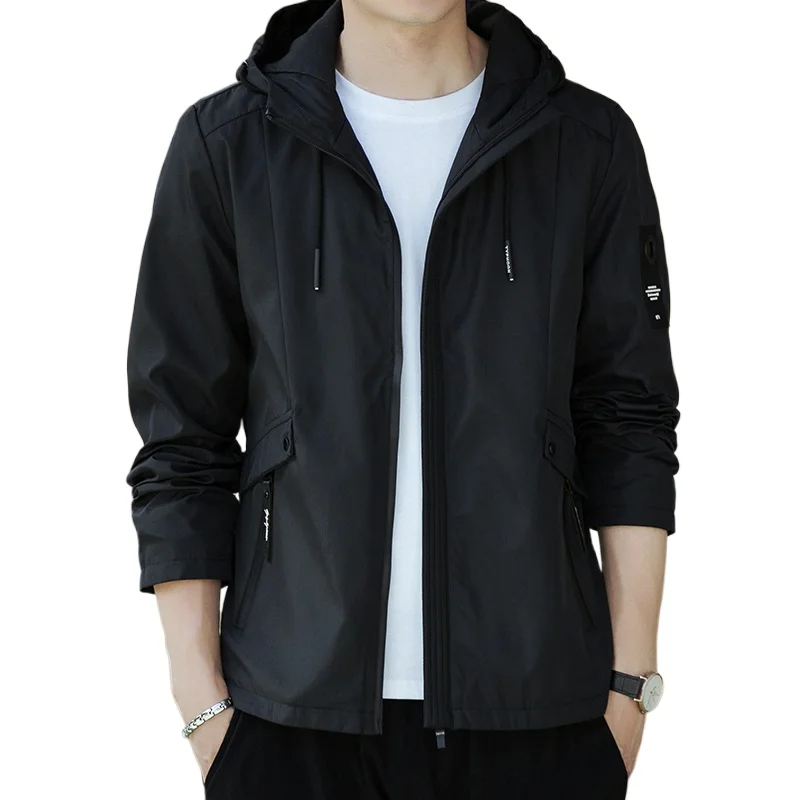 Men's Hooded Jacket – Lightweight four-season outerwear with a zipper design, suitable for hiking and urban wear.