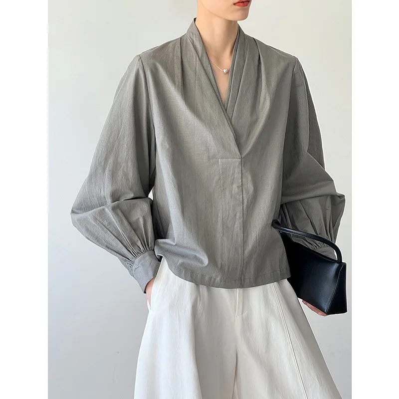 Women Casual White Color Blouses V-Neck Puff Sleeve Office Blouses Womens Tops And Blouses Fashion Shirts Blusas Roupa Feminina