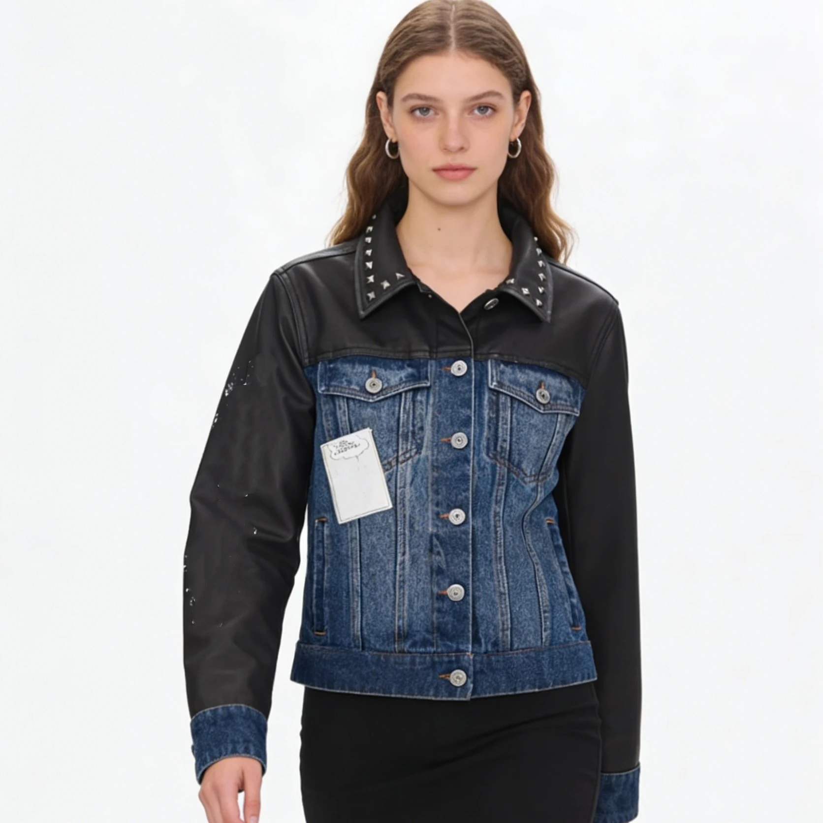 Women's jackets high quality women's clothing Women's denim jacket Coat New Women's Cartoon Printed Splicing PU Jacket